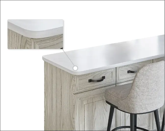 Do you have a lot of people in and out of your kitchen? Want to make sure you don’t bruise your hip on a sharp corner? These rounded corners lessen the blow if anyone were to accidentally run into them. Practical and beautiful, safety corners will give you added peace of mind.